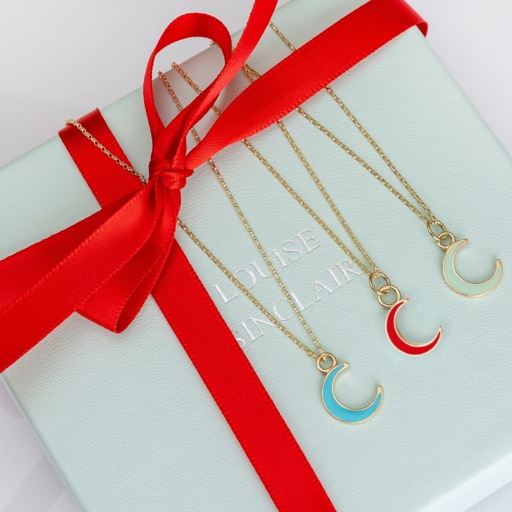 9ct Yellow Gold Red Enamel Half-Moon Necklace