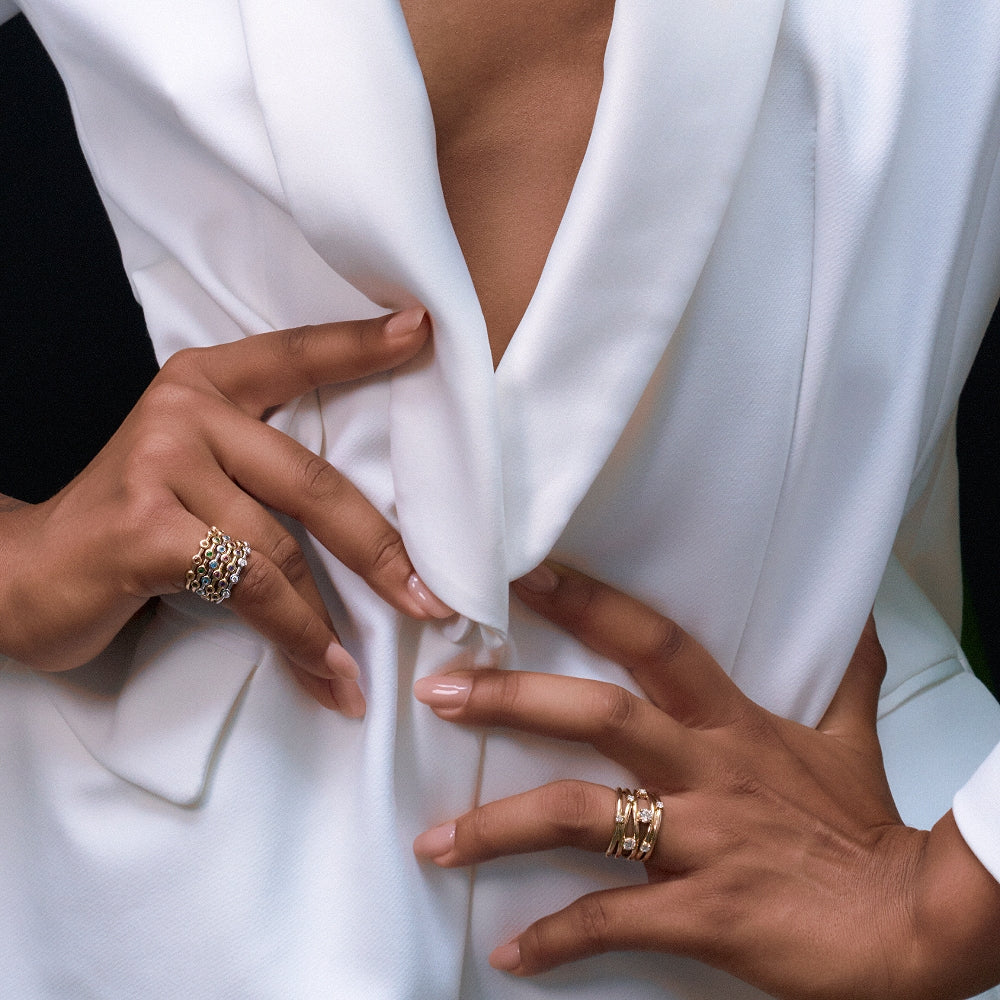Louise only crafts jewellery using refined gold and certified, conflict-free diamonds and stones from known and reputable sources.